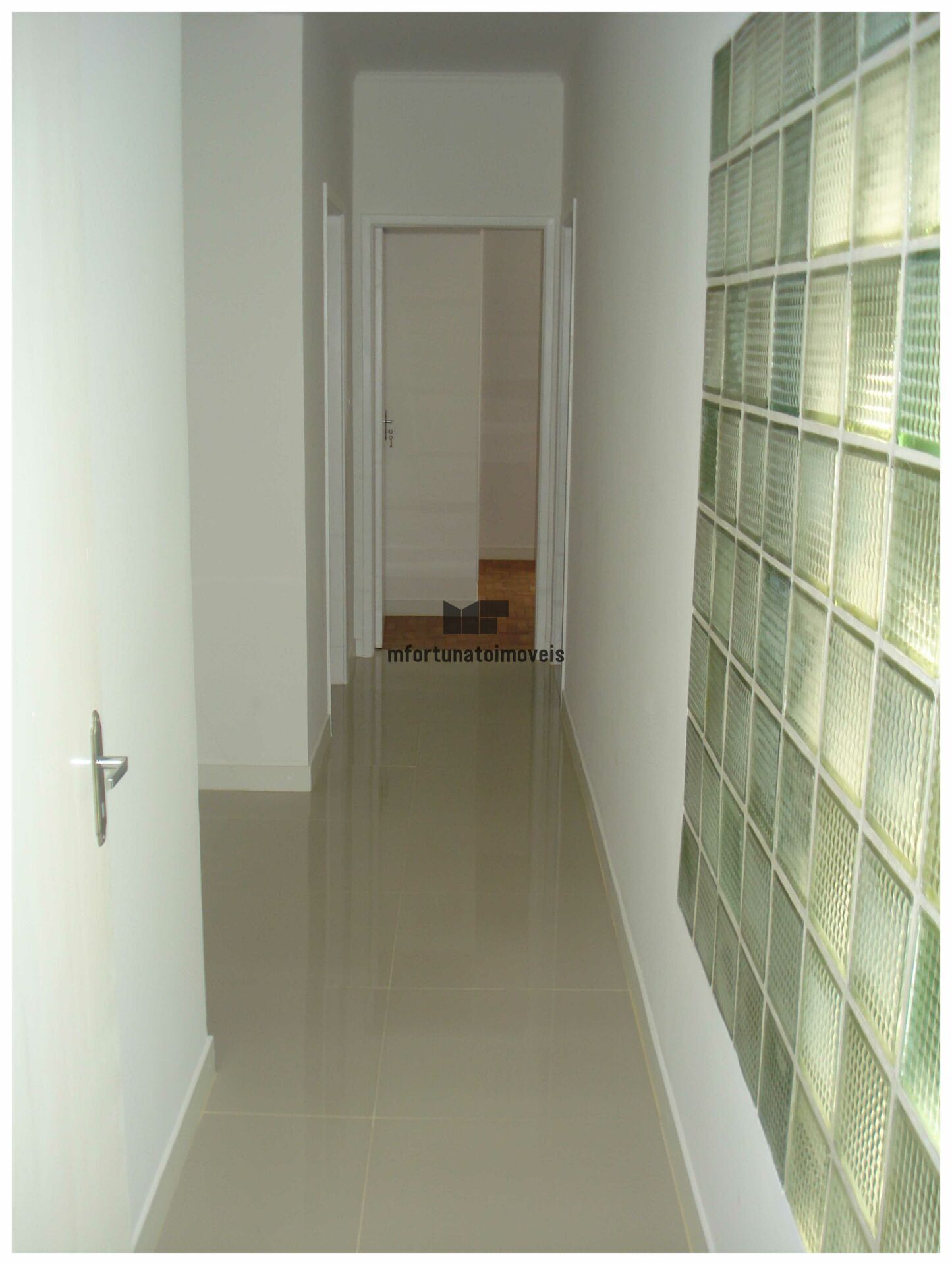 Piso Porcelanato 60X60cm polido nas salas, cozinha e corredor.